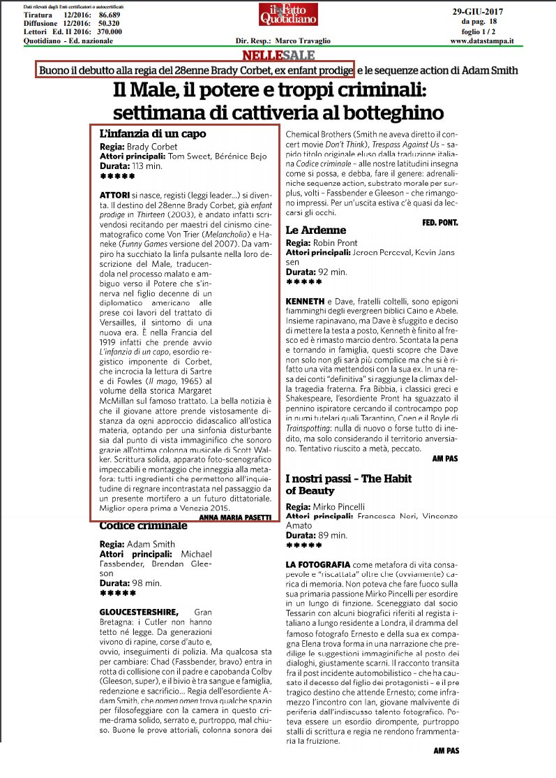 Scan: The Childhood OF A Leader em Jornais Italianos