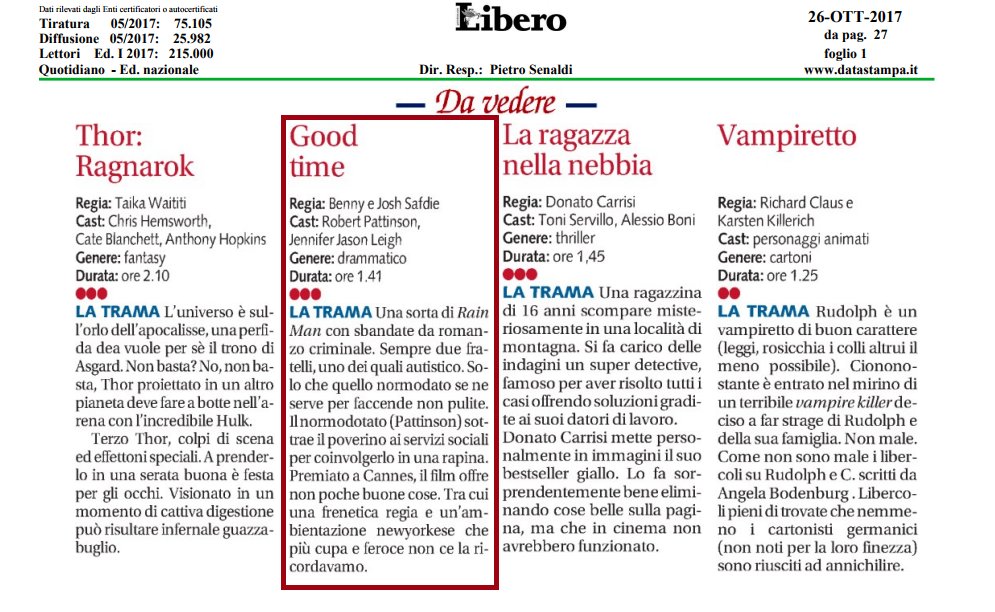Scan: Robert Pattinson e Good Time no Libero